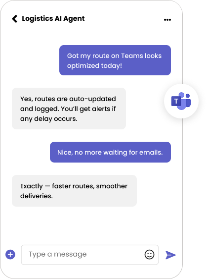 The Logistics Virtual Agent automatically sends optimized route details to drivers on Teams and Telegram. It logs acknowledgments and alerts dispatchers about potential delays.