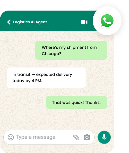 A customer says, “Where’s my shipment from Chicago?” — it instantly retrieves and updates the live tracking status.